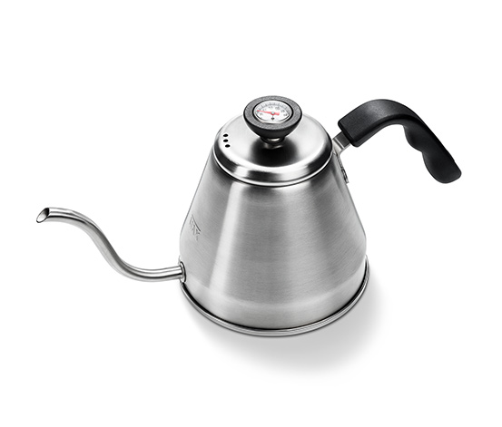 Pour Over demleme yaparken önemli noktalardan biri de, ince, kesintisiz ve hızını kontrol edebileceğiniz bir su akışına sahip olmak. Bu ürüneler Goose Neck Kettle diye adlandırılıyor, Türkçeye ise Kaz Boynu Su Isıtıcı diye çevirebiliriz. Isıtıcıların direkt ocak üstünde kullanılan versiyonları olduğu gibi sıcaklık ayarlı elektrikli olanlarını da bulmak mümkün. Bunlarına arasında tchibo üretimi olan düşük maliyetli ve hacimli tchibo kettle en dikkat çekenlerden. Ocak üstünde kullanmanız çok doğru olmayabilir ama ısıtılmış suyu içine koyarak rahatlıkla kullanabilirsiniz.