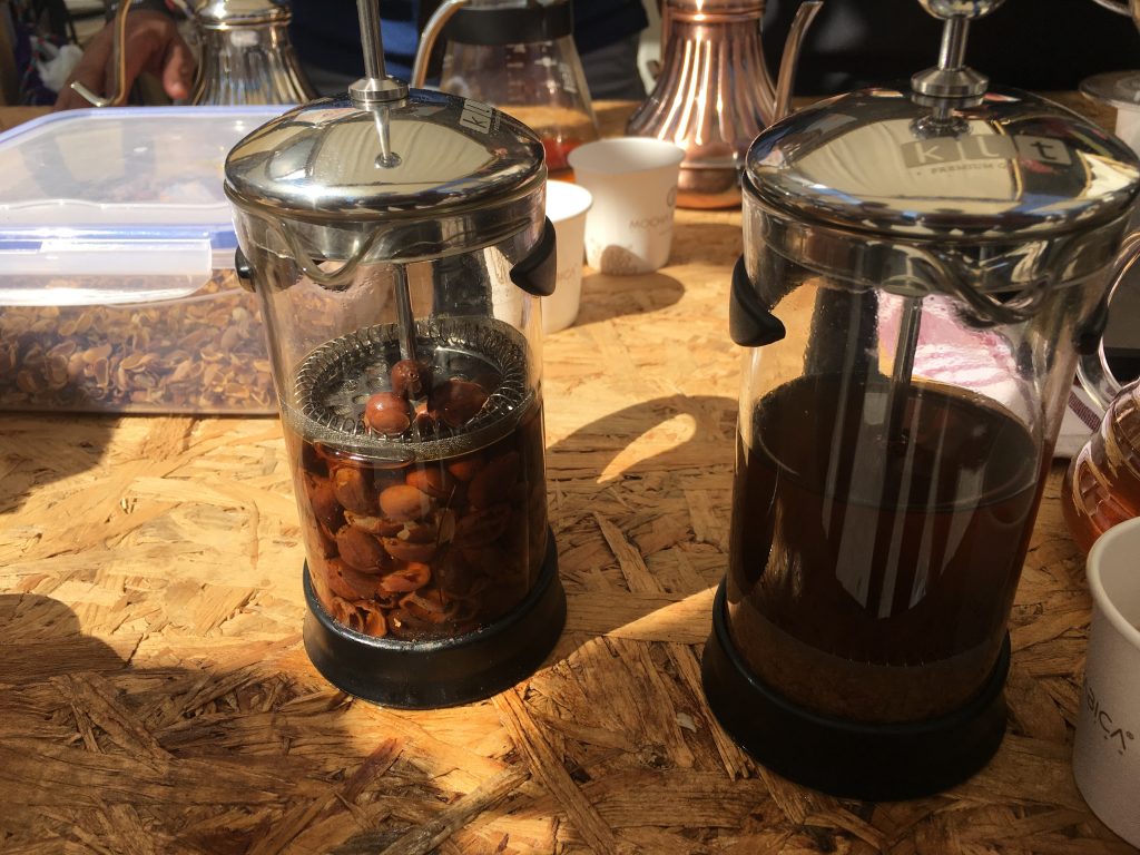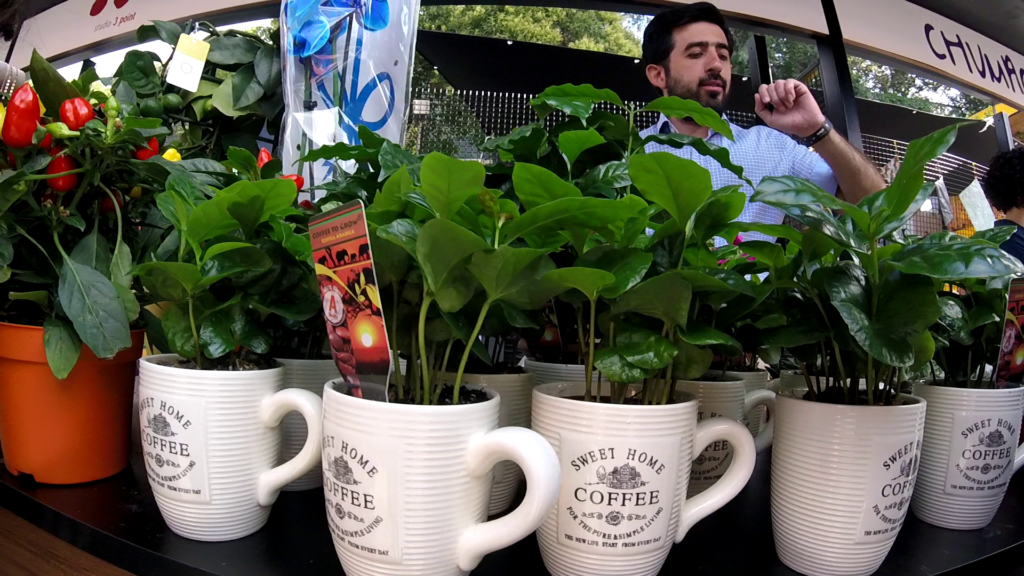 Festivali gezerken Çiçekland standında Hakan Bey’le tanıştım. Kendileri yemen tipi arabica çekirdeğinden kahve çimlendirip bunu çok hoş kupalar içerisinde satıyorlardı. Yetiştirdikleri daha bir çok meyve ve bitki var elbette. Ben de evimde kahve yetiştirmeye merak saldığım için kendisiyle öğle arasında tatminkar bir süre sohbet edebildik. Her şeyden önce işini severek yapan ve bilgi sahibi bir kişi. Bu konuda da oldukça deneyim sahibi diyebilirim. Eğer evde kahve bitkisi yetiştirmek gibi bir niyetiniz varsa hazır filiz veya fidanlarla başlayıp onların bir kaç yıl sonra vereceği meyvelerden yeniden çimlendirme yapabilirsiniz. Zira tahmin edeceğiniz üzere piyasada satın aldığınız yeşil kahve çekirdekleri işlenmiş olduğu için çimlendirmeye uygun değil. Kahve yetiştiriken bir sorunuz ya da probleminiz olursa Çiçekland’e danışabilirsiniz. Oldukça ilgili ve bilgili bir tecrübe yaşayacağınız şüphesiz.