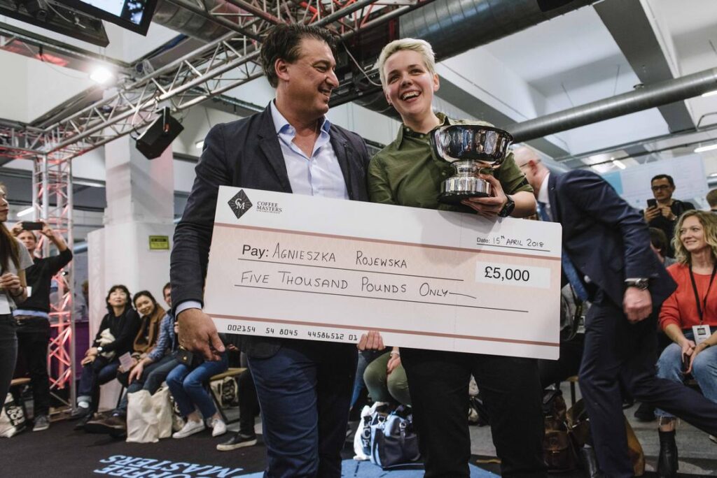 Londra Kahve Festivali son gününde ziyaret ettiğim için Barista Masters yarışmasının finalini de izleme şansını elde ettim. En iyi barista olarak bu sene kazanan Agnieszka Rojewska oldu ve kendisi Londra’da kazanan ilk kadın barista ünvanını da aldı.