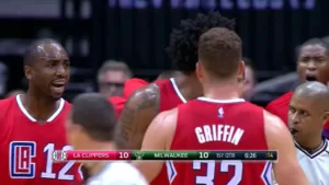 Greg Monroe kariyerinin en buyuk hatalarından birini yaparak uzerine doğru gelen DeAndre Jordan’ın karşısına duruyor